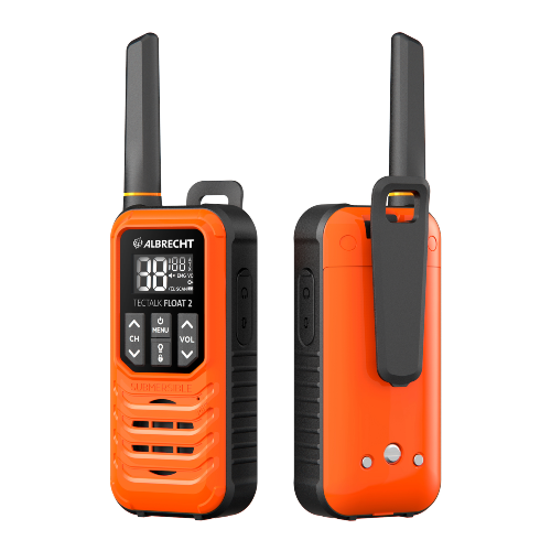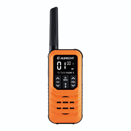 The new waterproof (IP67), dustproof and floatable PMR446 transceiver from ALBRECHT is the ideal solution for the professional and recreational sector. The high-quality feel, the robustness of the cabin, and the fact that it offers maximum communication range, make Tectalk Float 2 your permanent companion, regardless of the weather conditions outdoors. Tectalk Float 2 aims to cover communication needs between users in any chosen outdoor activity.